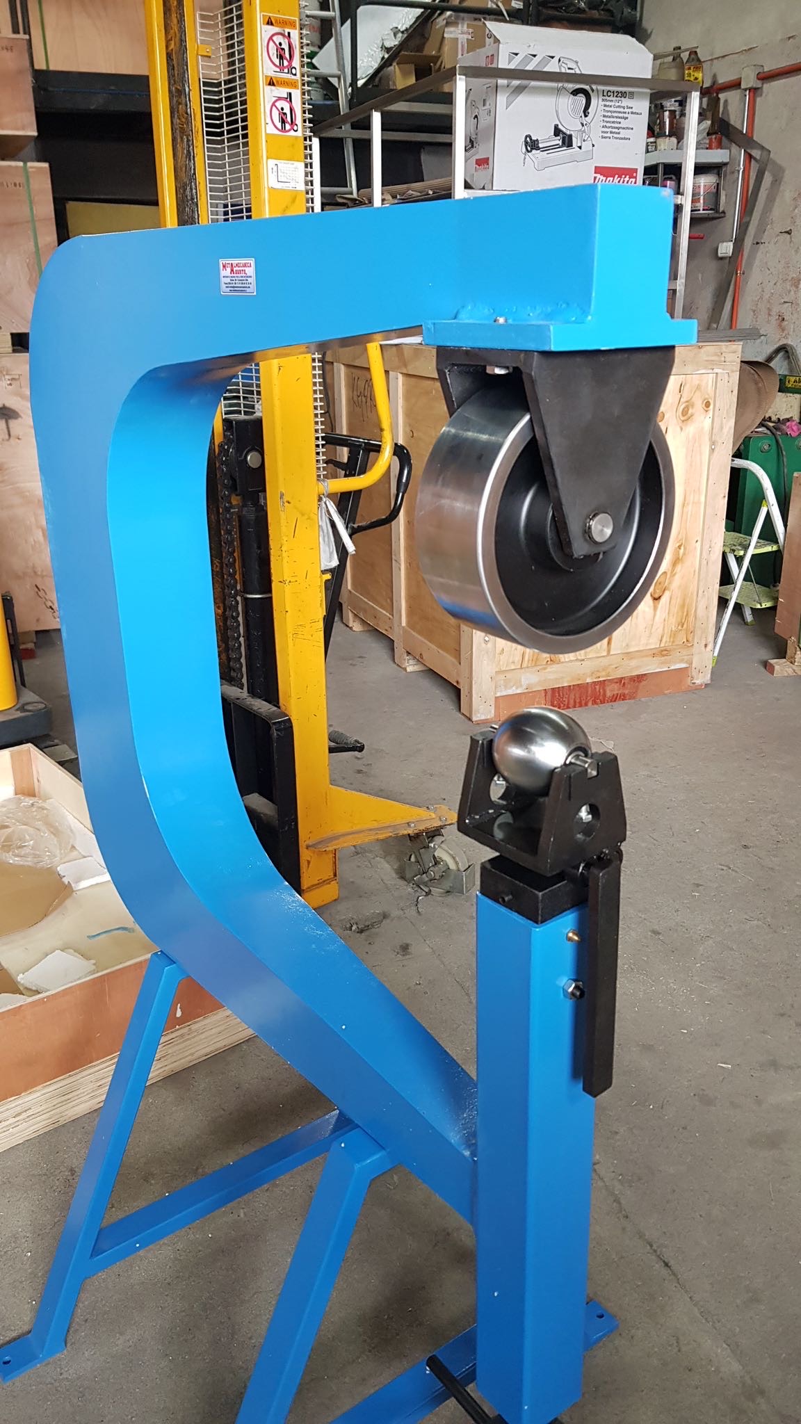 Máquina diseñada para fabricar piezas automotrices con curvas tales como guardafangos, esta máquina posee 4 juegos de matrices para diferentes diámetros, garganta de 700 mm. espesor de 1,5mm.