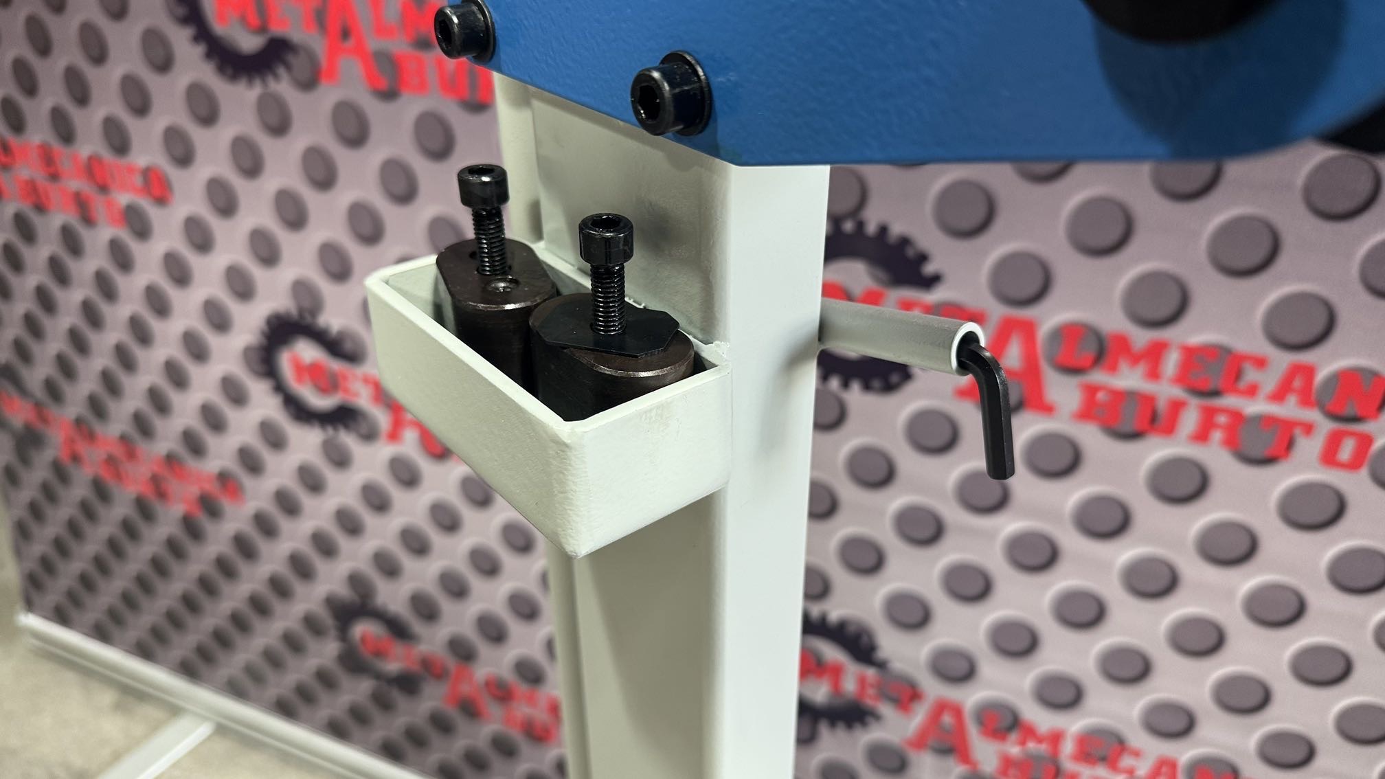 Novedosa maquina de constricción y estiramiento, (SHRINKER & STRETCHER) posee dos muelas desmontables una para cada fin, hace curvas hacia adentro y afuera a ángulos de un espesor máximo de 1,2mm. en acero al carbono, pestaña de hasta 15mm. Se utiliza un pedal para accionar la mandíbula de la máquina, profundidad de garganta 200 mm.