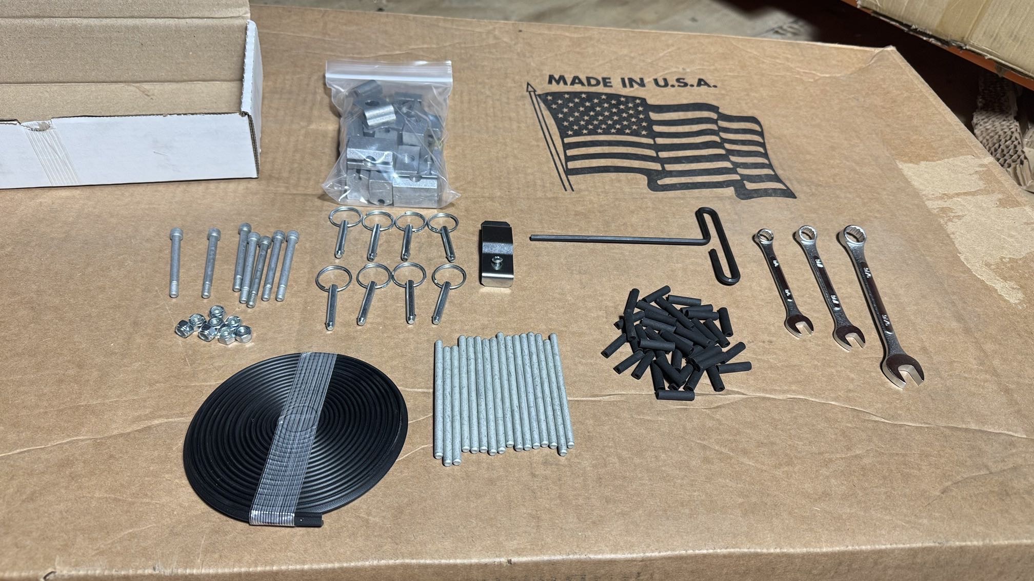 KIT FULL PLEGADORA SUPERMAX, INCLUYE 8 JUEGOS DE KIT DE POTENCIA, 16 PASADORES BARRA DE BLOQUEO CON GOMAS, 8 TORNILLOS PIVOTANTES, 6 PASADORES DE MANILLA Y DOS TORNILLOS, LLAVE HEXAGONAL 1/4" LLAVE 14MM. LLAVE 3/8