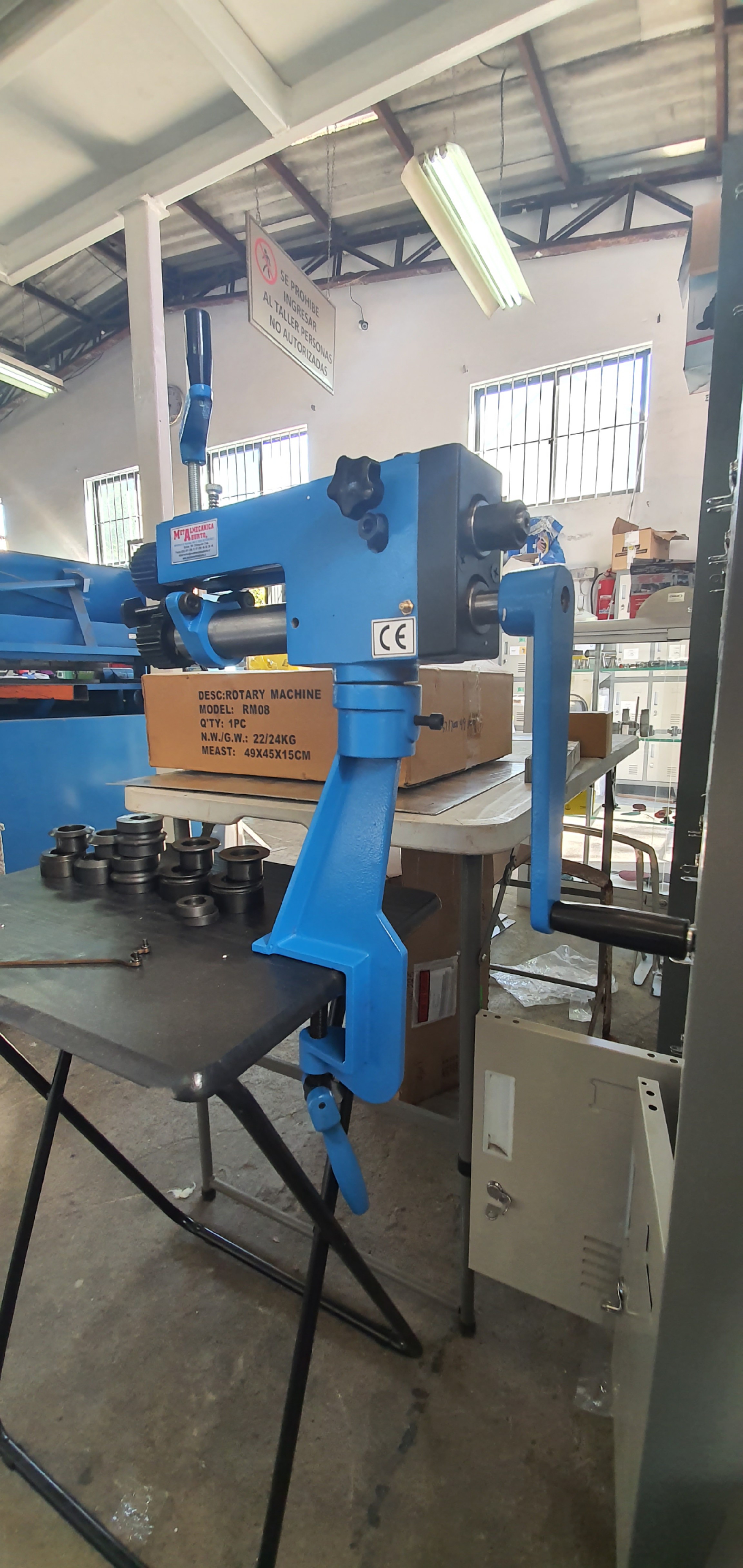Rodonadora manual modelo RM 08 cuenta con seis juegos de rodones, para hojalata de hasta 0,8mm.